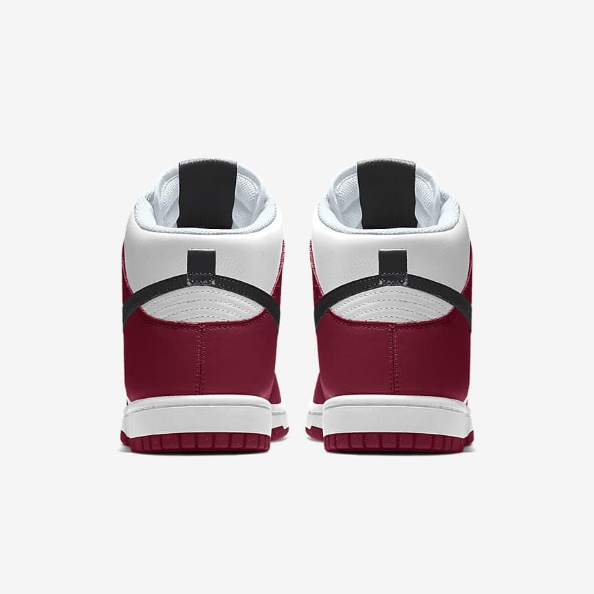 From street heat to hardwood grit, the Nike Dunk High "Bloodline" is all power, no filler. With deep maroon overlays, crisp white underlays, and a blackout Swoosh, this pair walks the line between vintage varsity and next-gen edge.